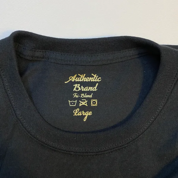 Screen Printed Metallic Tagless Neck Labels are made for brands that want a bold, metallic inside neck print with a clean, professional finish to stand out. These single color metallic plastisol labels give you bold, high-opacity neck prints that stand out clearly while still feeling soft and comfortable to wear.