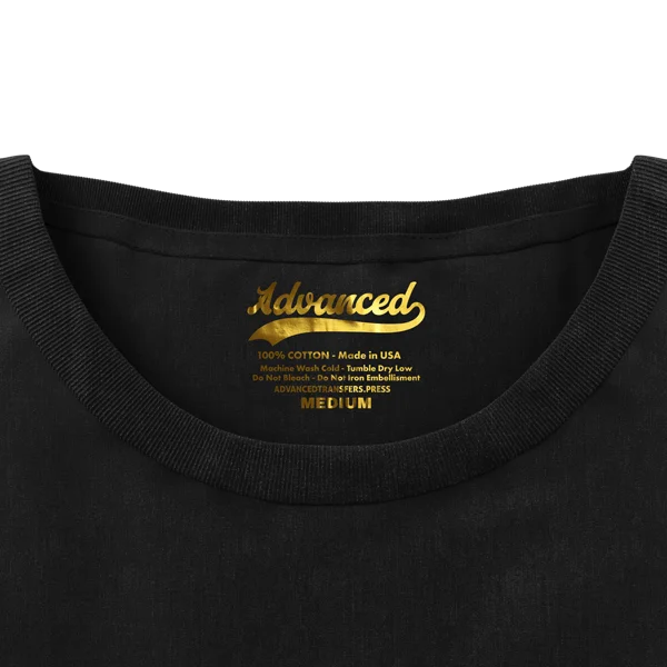 Designed for everyday branding, these labels have some stretch, are built for durability, and apply at lower temperatures between 300°F and 330°F. They work on most fabrics that can handle 300°F or more, including cotton, polyester, blends, and other synthetics. Whether you are decorating performance wear, athleisure, or retail apparel, these metallic tagless labels add a premium touch that looks more polished than sewn tags or plastic feeling transfers.