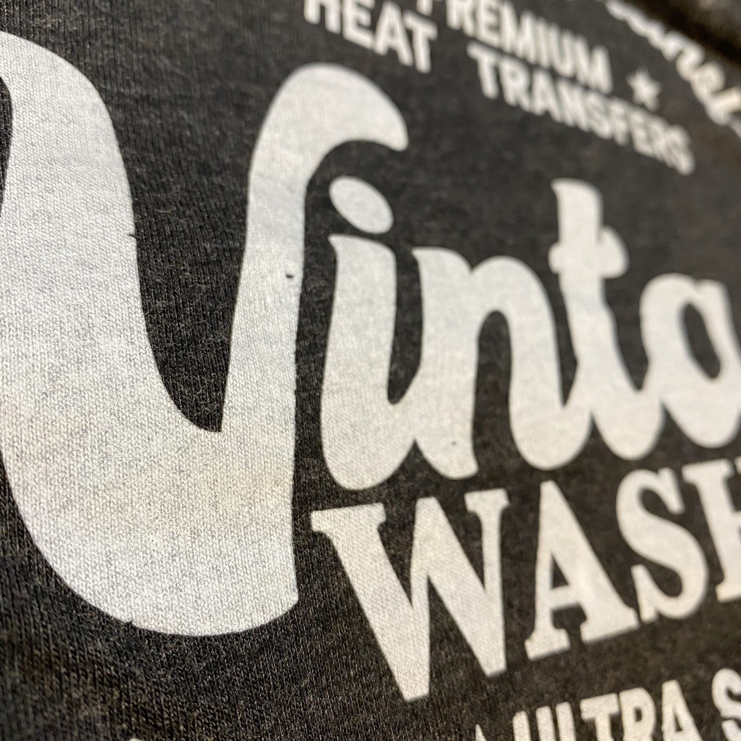 - Vintage washed look screen printed plastisol heat transfers